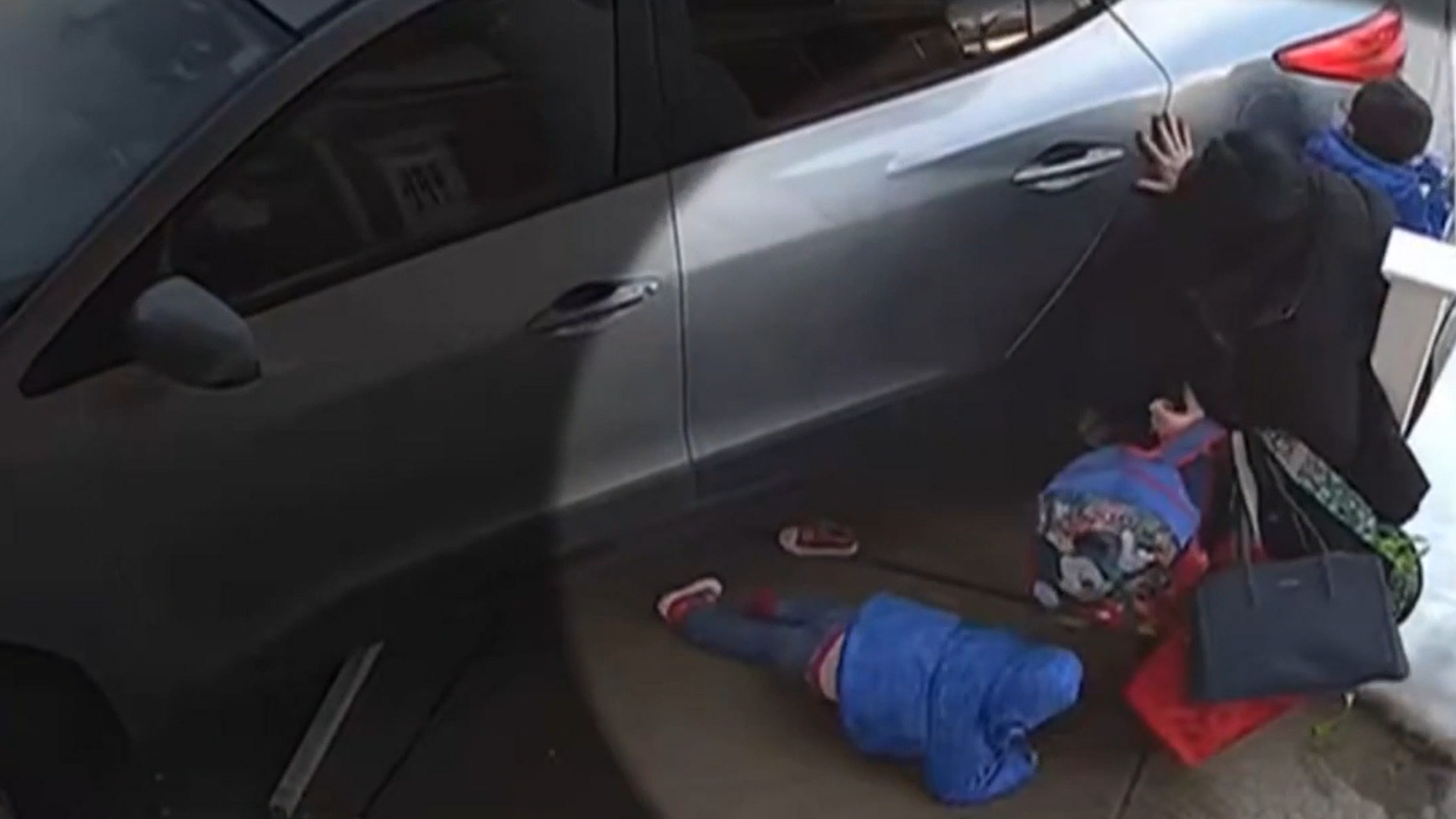 El accidente ocurrió fuera de 'Bloom Academy'. Un vídeo de vigilancia de la escuela muestra a una mujer y dos niños saliendo de la escuela cuando, de forma imprevista, una camioneta choca contra una viga en la pasarela, rebotando y golpeando a los tres familiares.