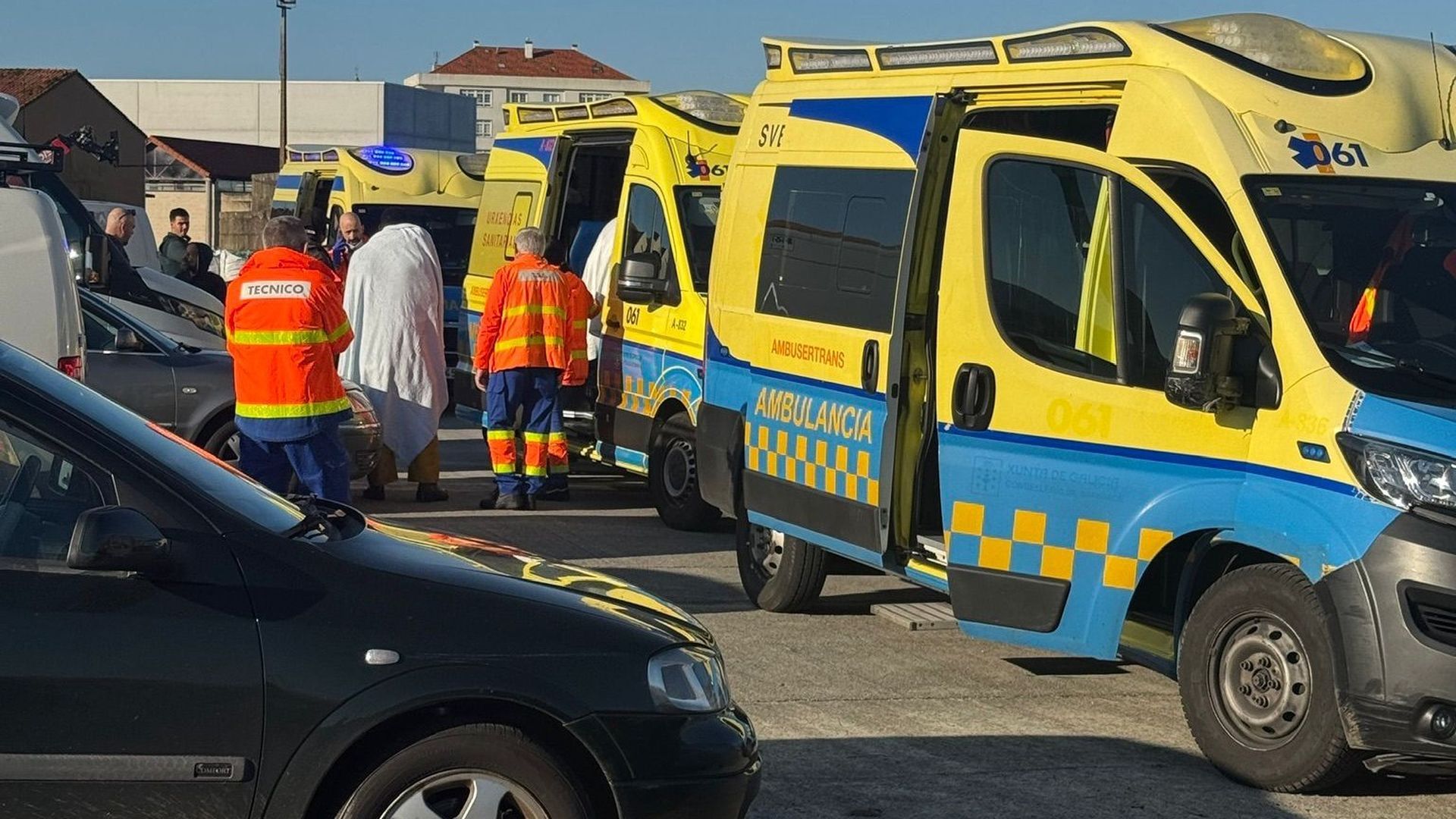 A la llegada al puerto de Porto do Son, a los tripulantes les esperaban tres ambulancias, donde fueron atendidos en un primer momento por personal movilizado de 061. El patrón de la embarcación hundida y uno de los marineros fueron trasladados al Hospital do Barbanza, para una revisión y los otros tripulantes fueron atendidos por los sanitarios en el mismo muelle, todos muy nerviosos por lo sucedido.
