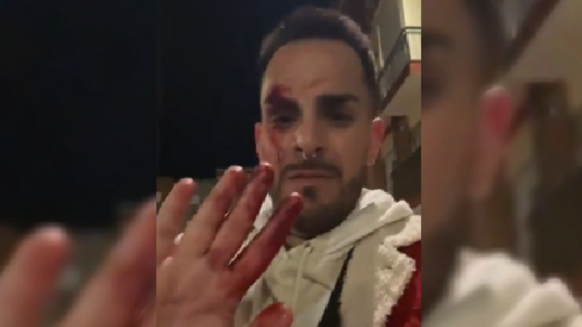 En el vídeo aparece con la cara ensangrentada, una ceja abierta y visiblemente alterado mientras regresaba a su casa