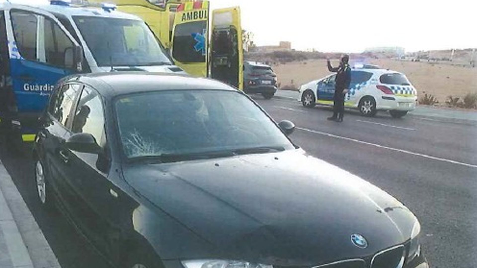 La cabeza de la víctima impactó contra la luna delantera del coche, que continuó circulando unos metros hasta que frenó y salió despedido a unos 15 metros, chocando finalmente contra el bordillo.