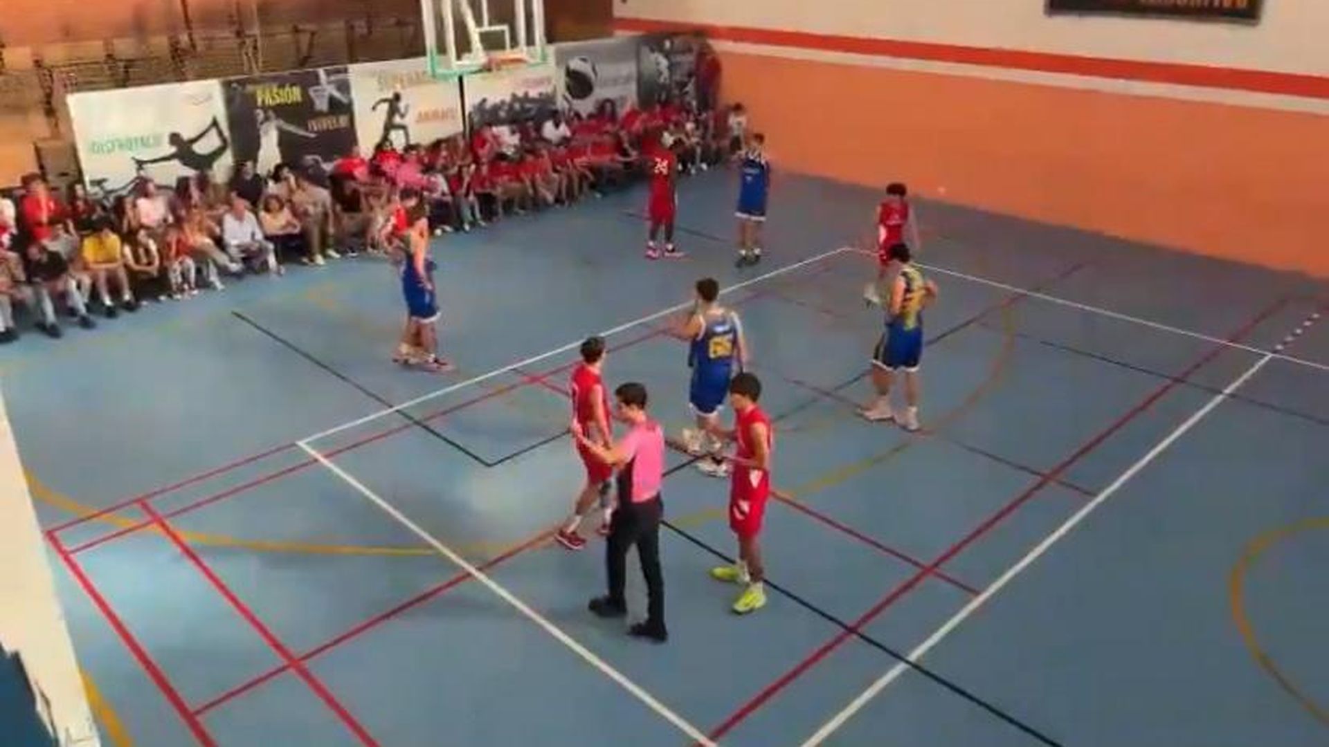Los jugadores y asistentes al partido de baloncesto entre Sajuma y CB Coria, correspondiente a la Segunda Senior Provincial, que se disputaba en la tarde del 26 de abril, en el pabellón de los Salesianos de la Trinidad, vivieron momentos de tensión por un incidente inesperado.