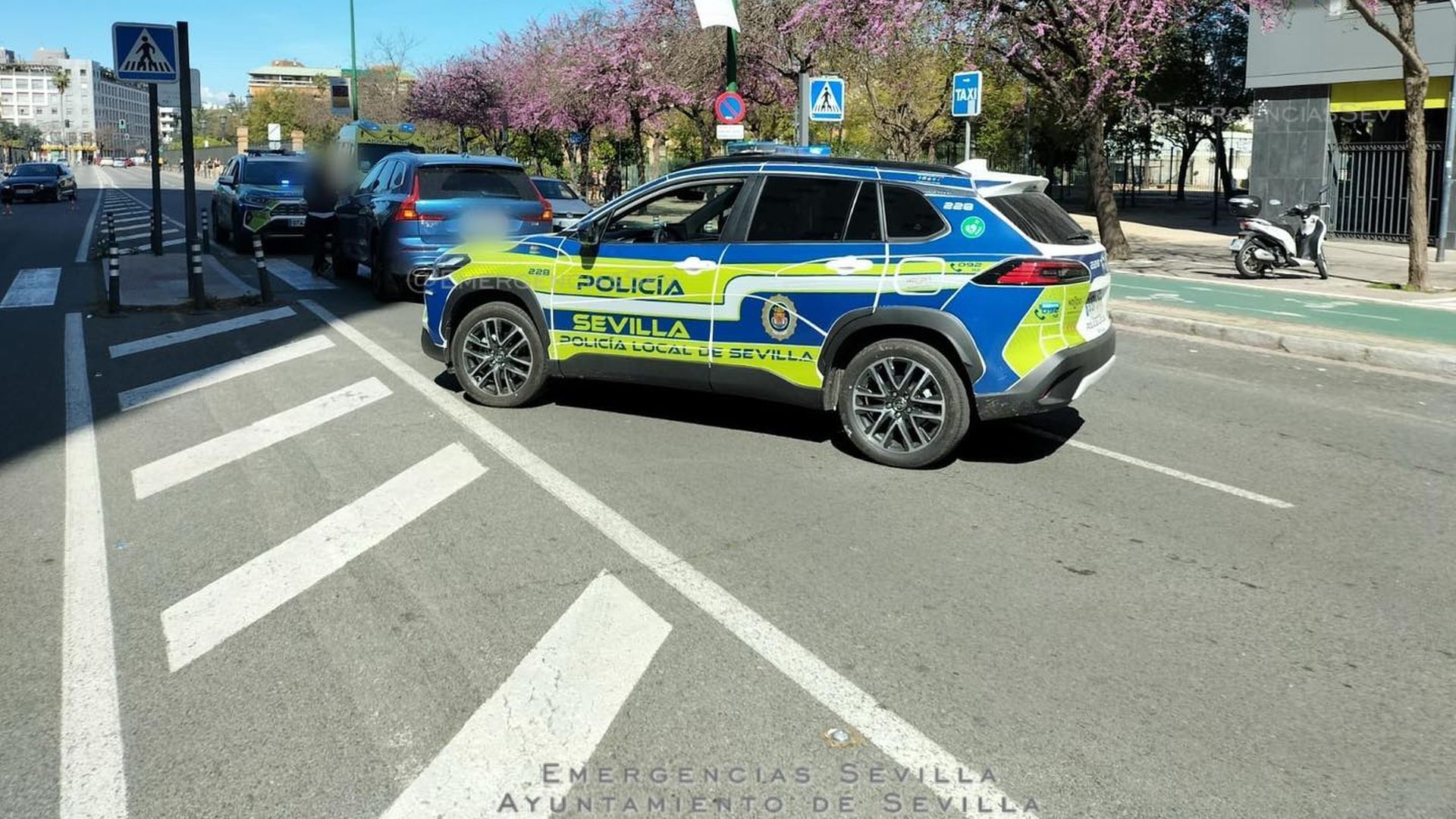 Nueve personas han resultado heridas, cuatro de ellas policías locales, en una persecución en Sevilla a un vehículo conducido por un joven de 22 años sin carnet, que se dio a la fuga al percatarse de la presencia policial.