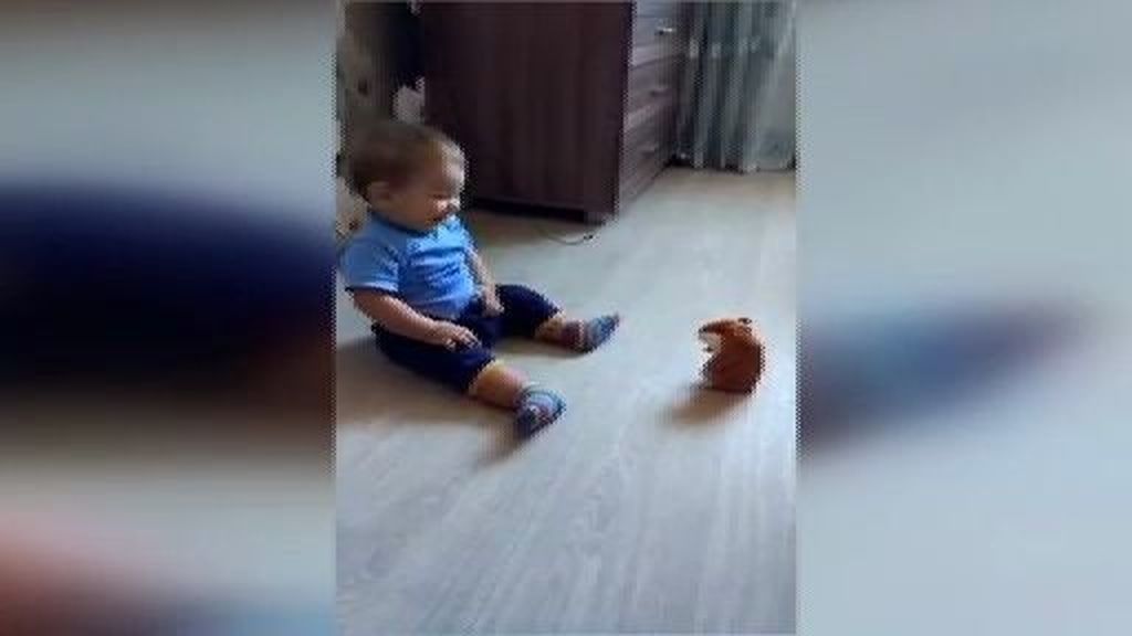 Un bebé se divierte con su hámster de juguete hasta que este 'cobra vida' inesperadamente y emite un chillido. El pequeño cambia rápidamente las risas por el llanto desconsolado.