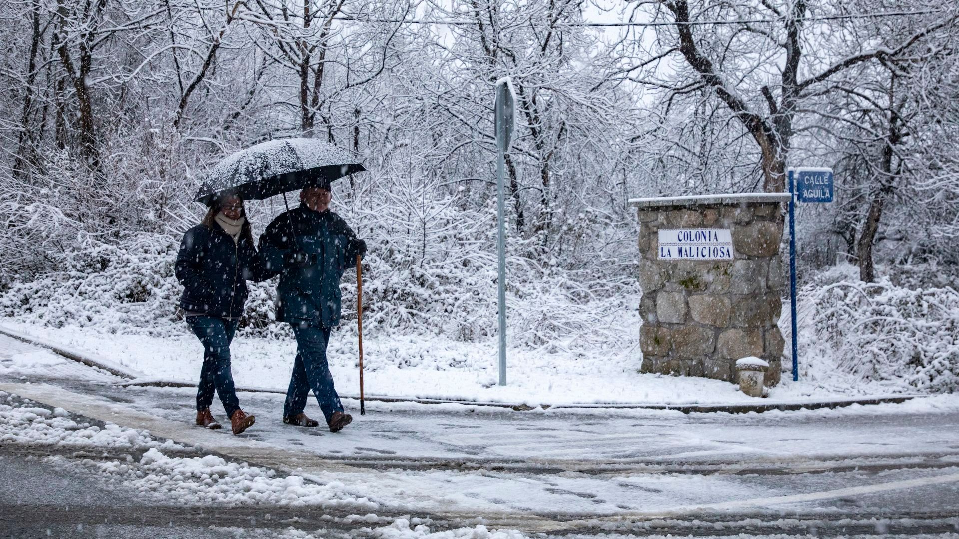 Nevada provocada por la borrasca Harry a su paso por España, en Mataelpino