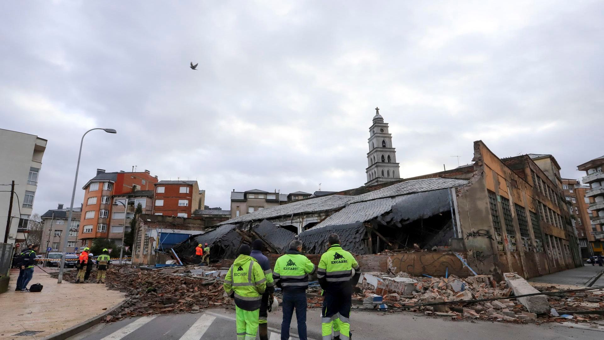 El derrumbe de parte del tejado y de una pared se ha producido sobre las seis de la mañana y ha causado daños a cuatro coches que se encontraban en su interior y a dos que estaban aparcados fuera.