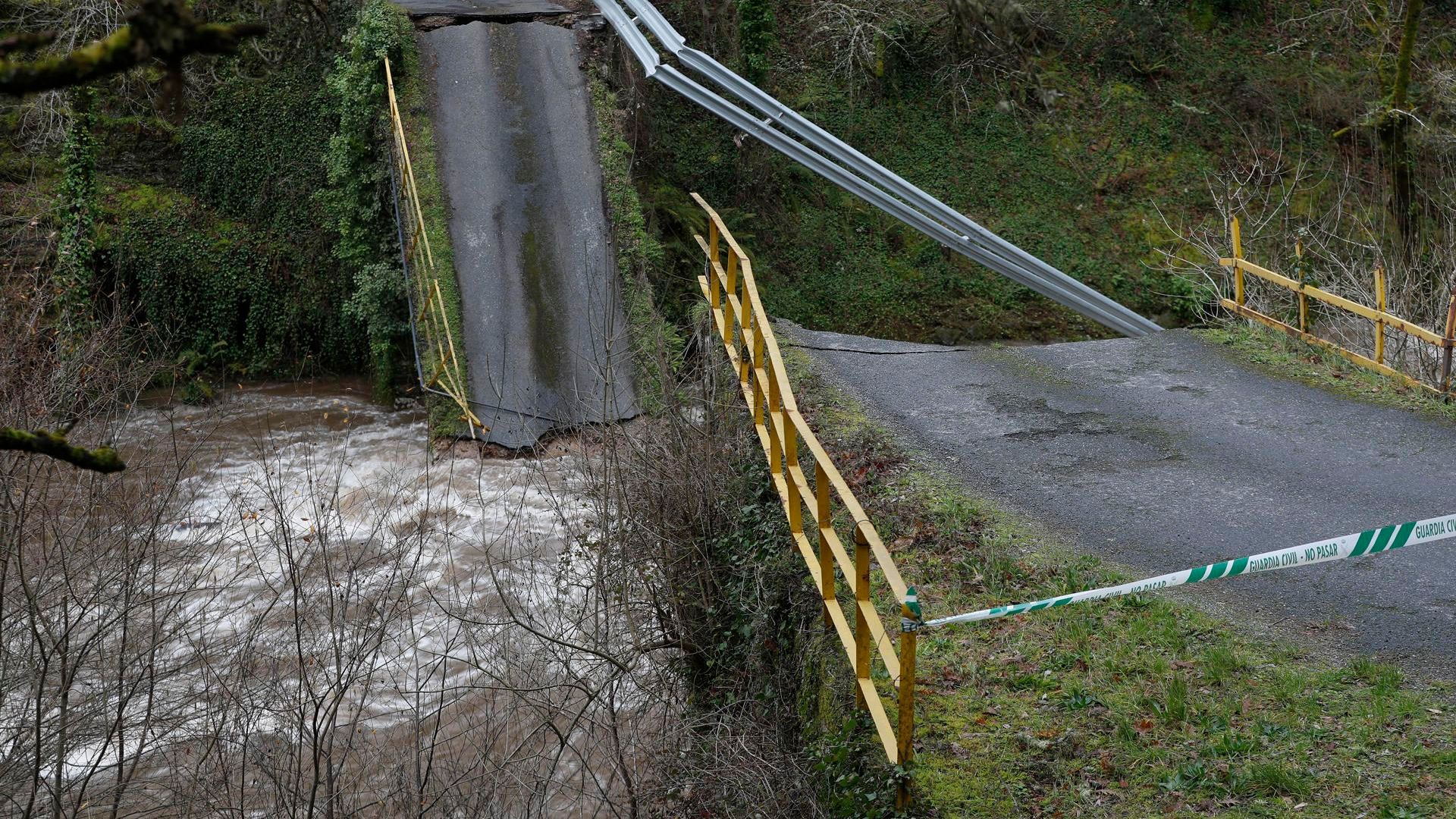 La Guardia Civil ha rescatado a un conductor que había quedado atrapado en su vehículo, parcialmente sumergido, en una carretera secundaria próximo al río Chaín, en el municipio de Portas, Pontevedra.