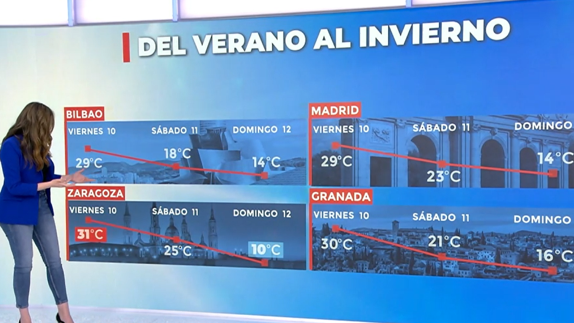 En algunas ciudades se va a notar está bajada prolongada de las temperaturas, como en Bilbao, Madrid, Zaragoza o Granada. Siendo el caso más significativo el de Zaragoza con una bajada en dos días de casi 20 grados de diferencia, de eso tampoco se libran otras ciudades en las que habrá cambios de 15 grados en bajada.