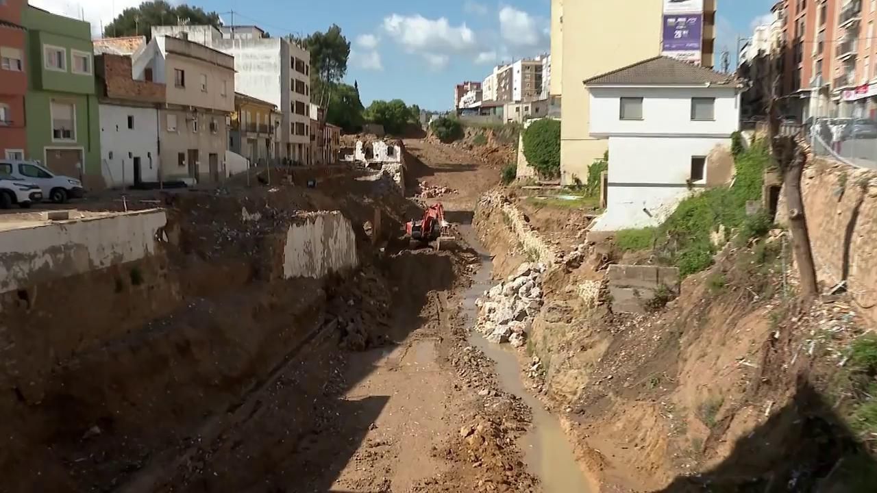 Se han acumulado más de 34,4 litros de agua por metro cuadrado en menos de hora y media. Son muchos los daños aún visibles en los alrededores del barranco del Poyo en Chiva. Casas arrasadas totalmente por un cauce que este jueves volvía a llevar agua. El trauma y el miedo psicológico de aquel 29 de octubre sigue presente.