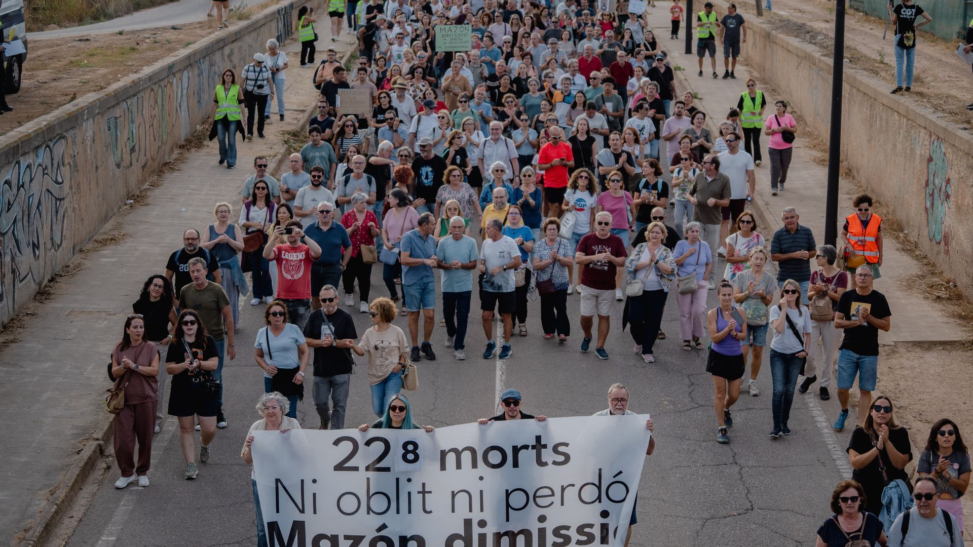 Antes del inicio de la marcha los manifestantes ya coreaban consignas contra Mazón como "Mazón dimisión", No volem un assesí de president (no queremos un asesino como presidente) y "no son muertos, son asesinados".