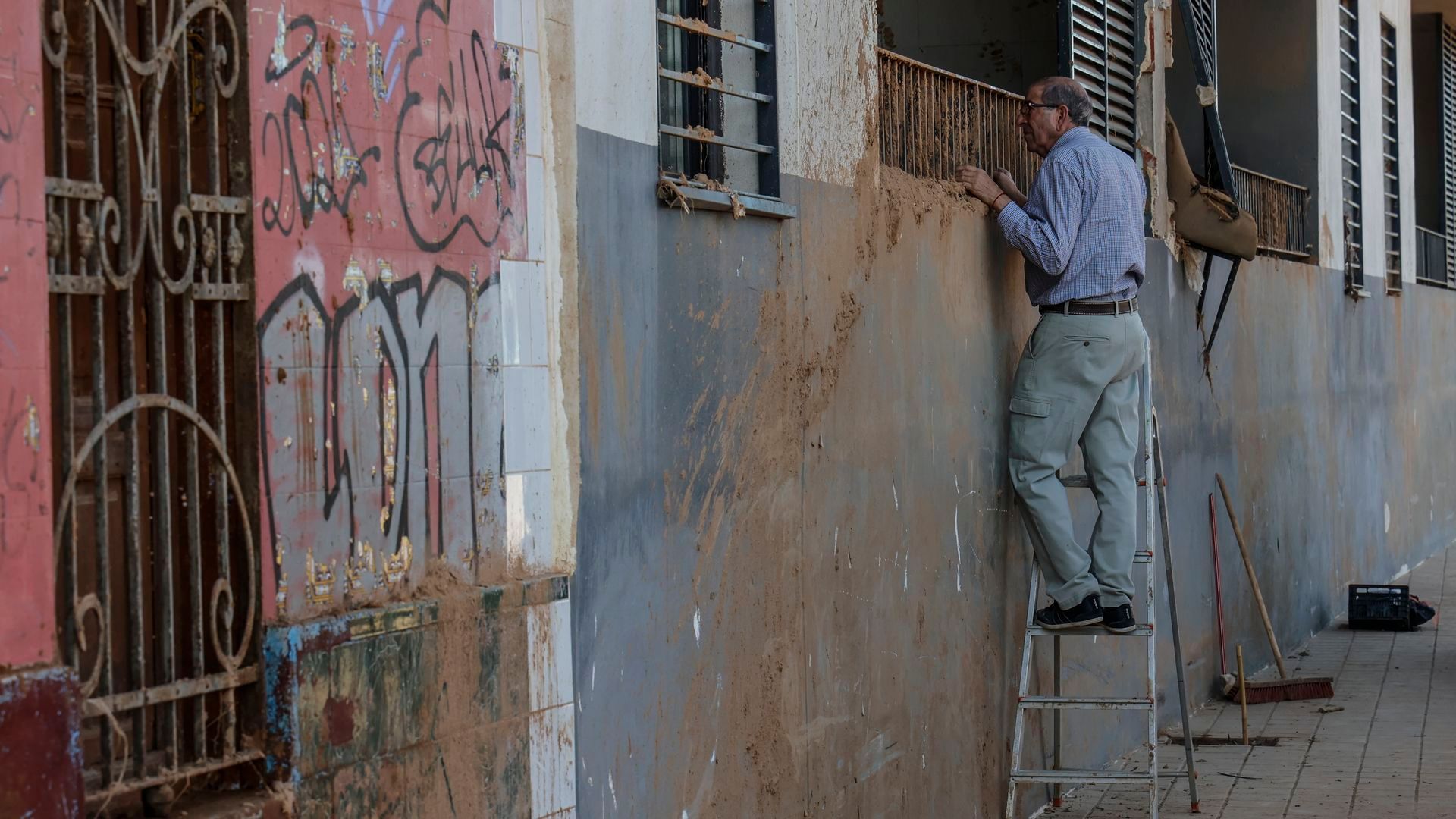 Un hombre observa un edificio afectado por la DANA. Europapress