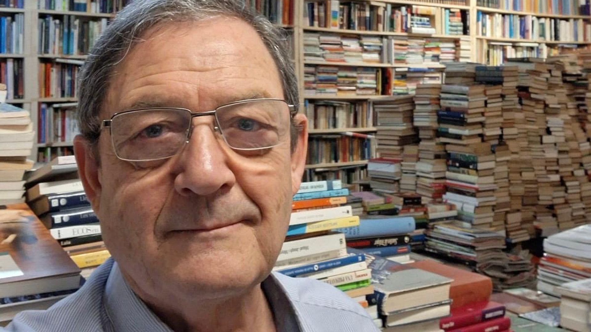 Rafael con algunos de los libros que ha rescatado