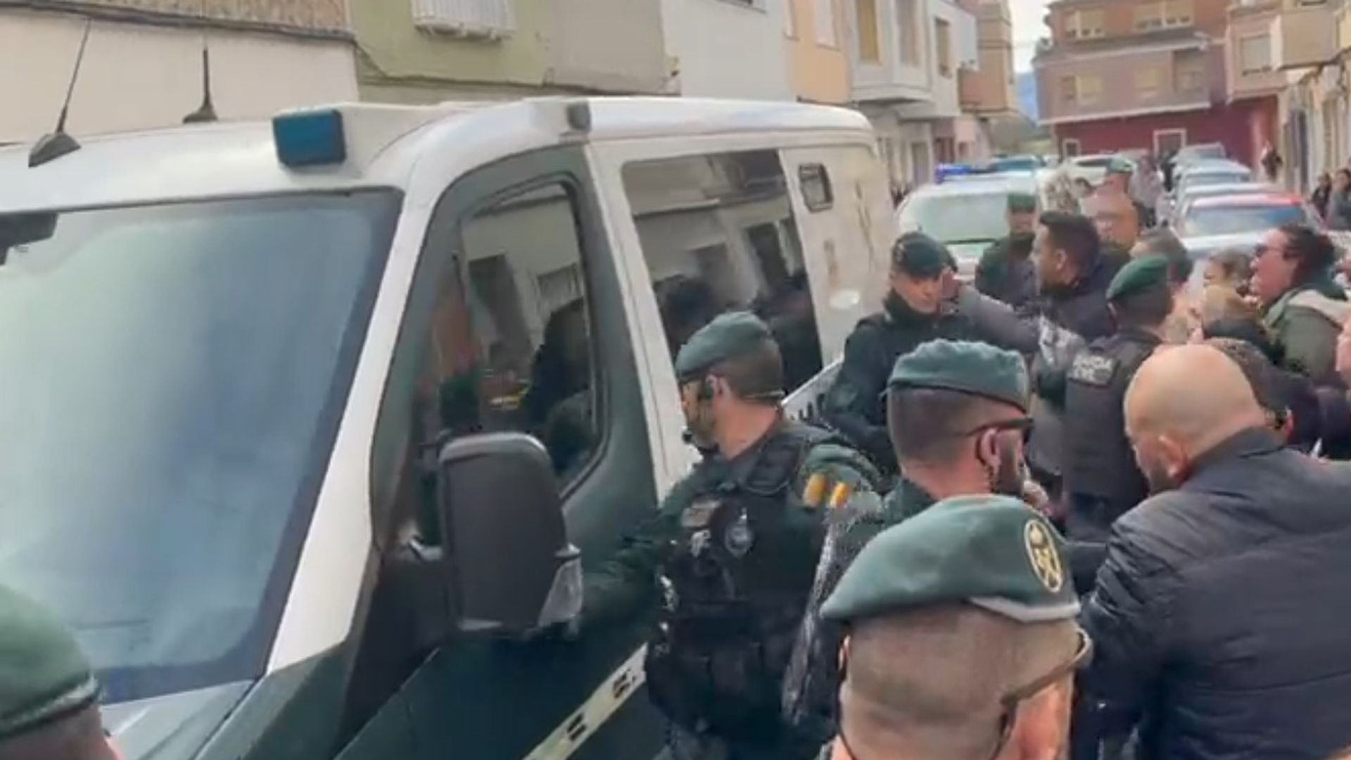 Entre los presentes estaban los progenitores de Álex. El padre, como había anunciado previamente a los medios de comunicación presentes en el lugar, ha tratado de lanzarse al furgón, aunque una decena de agentes lo han impedido.