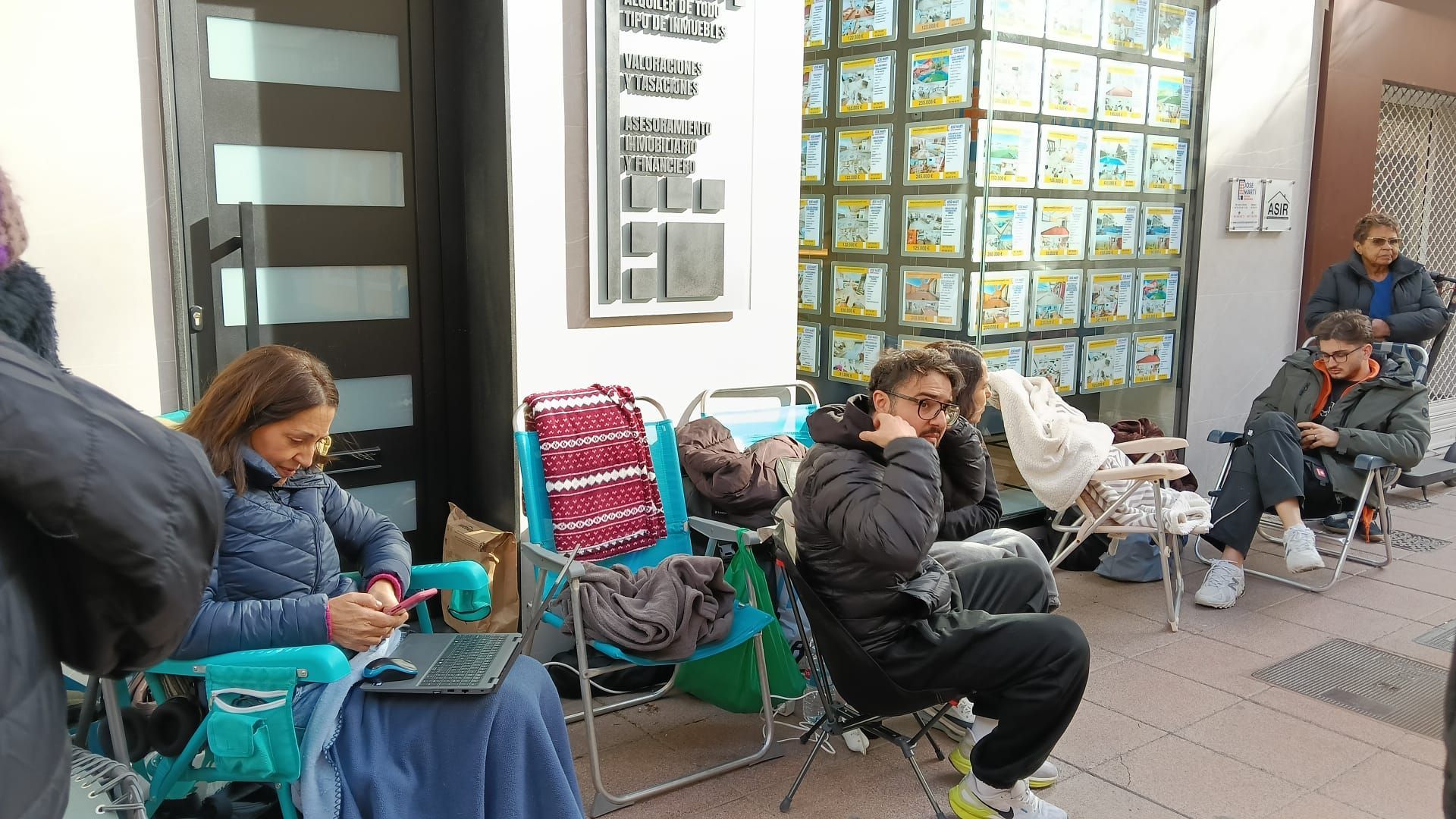 La escasez de vivienda asequible ha provocado que un grupo de jóvenes pase tres días y tres noches frente a una inmobiliaria de Alzira (Valencia) para acceder a un piso de protección oficial (VPP).