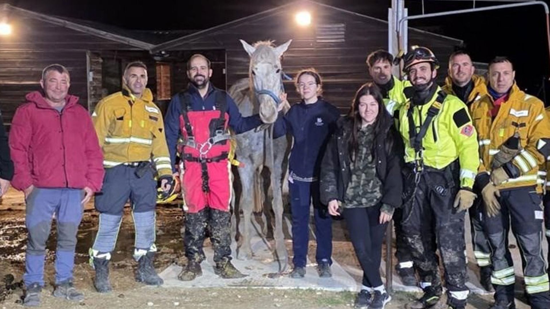 Para poder realizar el complejo rescate, los bomberos han tenido que emplear bombas de extracción de lodos junto con una retroexcavadora para hacer más grande la boca del pozo, por la que finalmente se ha podido sacar al caballo.