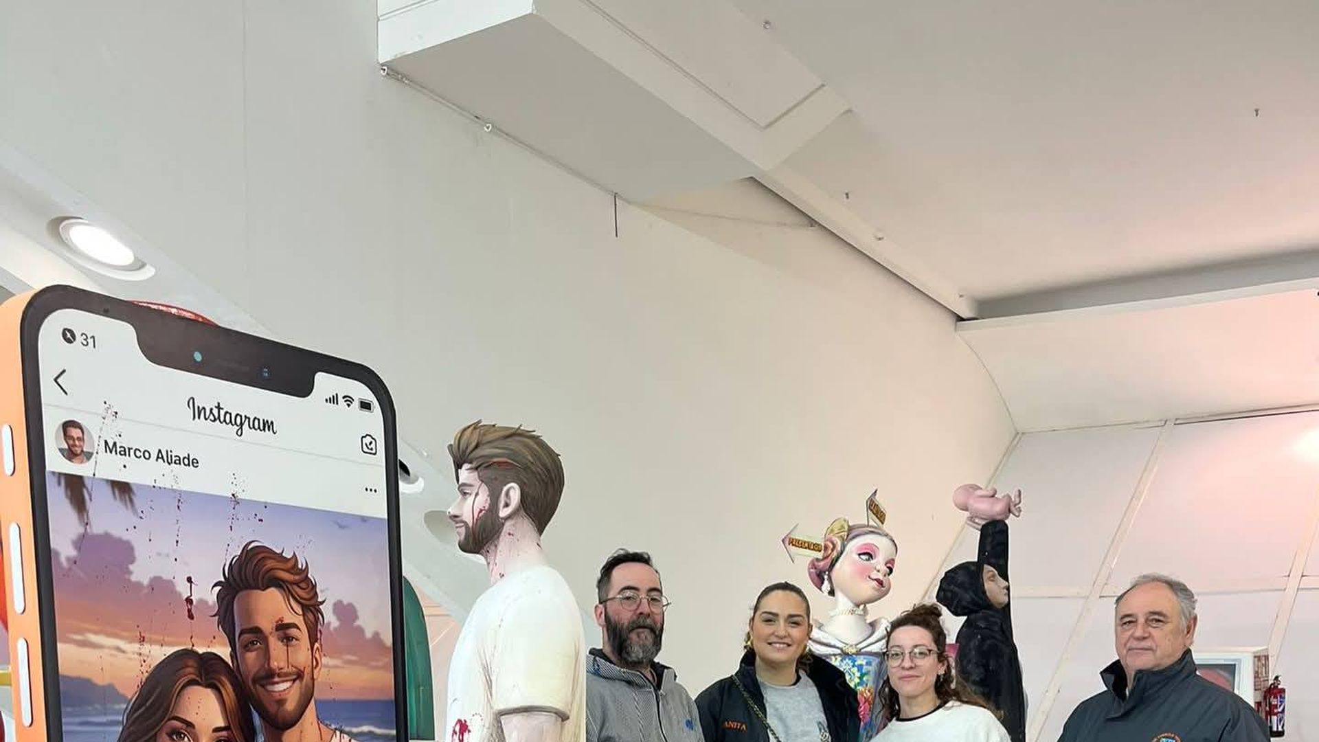 La figura forma parte de una falla que tiene el lema "Dame mi like". "La idea es dar que pensar al público. Hemos visto ya casos de la típica pareja perfecta que aparece en redes sociales, con idílica vida, sus viajes de lujo y que de repente, el hombre asesina a su mujer".