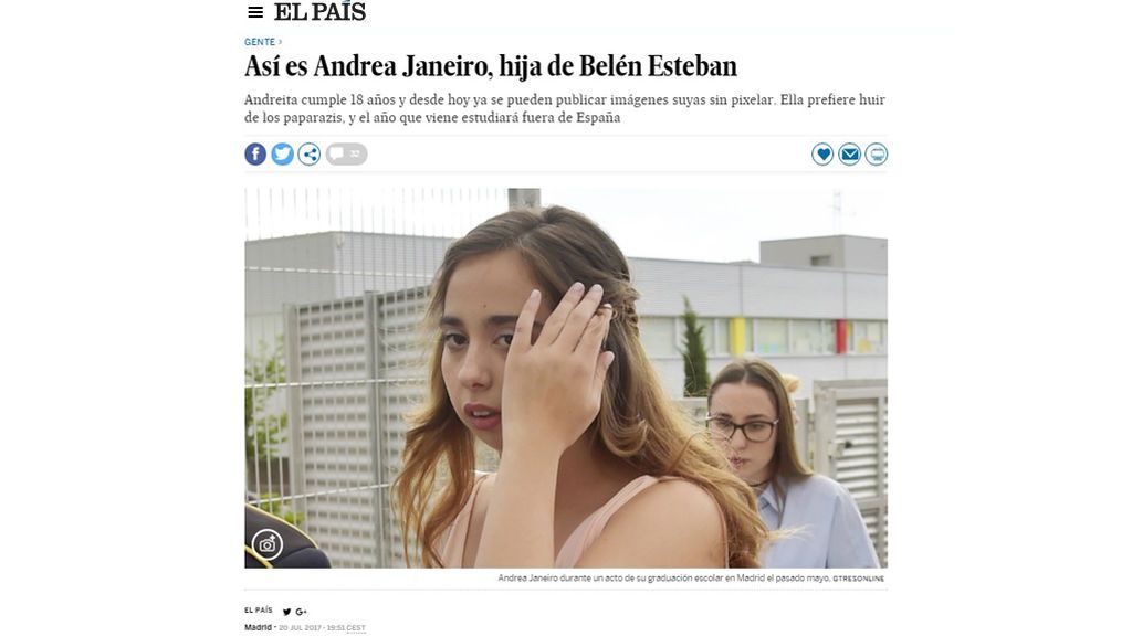 Su madre pedía respeto en 'Sálvame' para que la que hasta el día antes era una niña pudiese seguir cogiendo el autobús como una persona anónima y de nada sirvió. Mientras en 'Sálvame' se debatía sobre el derecho a la privacidad de los hijos de personajes públicos, los mismos que criticaban que Belén Esteban utilizase a su hija con fines lucrativos (y que le costó un problema con el entonces Defensor del Menor, Arturo Canalda), disfrutaban viendo sus fotogalerías de Andreíta en 'lo más visto' y con sus noticias bien posicionadas en Google.