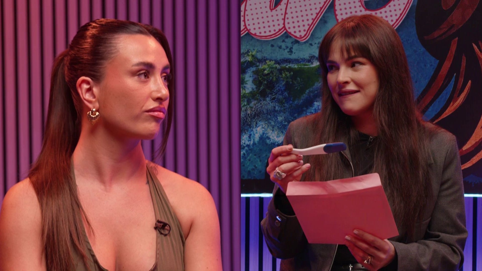 El momento clave llegó cuando Marta Peñate, con un sobre en la mano, anunció que había llegado la hora de descubrir el resultado del test de embarazo al que Olatz se había sometido minutos antes del inicio del programa. Antes de abrirlo, la colaboradora quiso indagar un poco más en la situación personal de la joven: "¿Hace cuánto te vino tu última menstruación?", preguntaba la presentadora, a lo que Olatz no sabía responder, generando aún más incertidumbre en el plató.