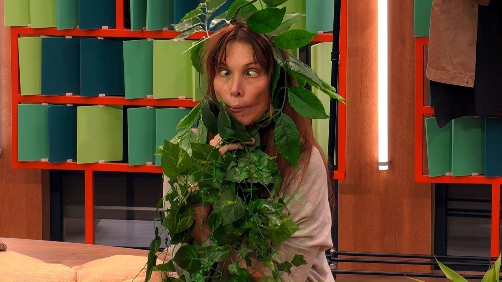 Cristina Piaget se disfraza de planta para pasar inadvertida