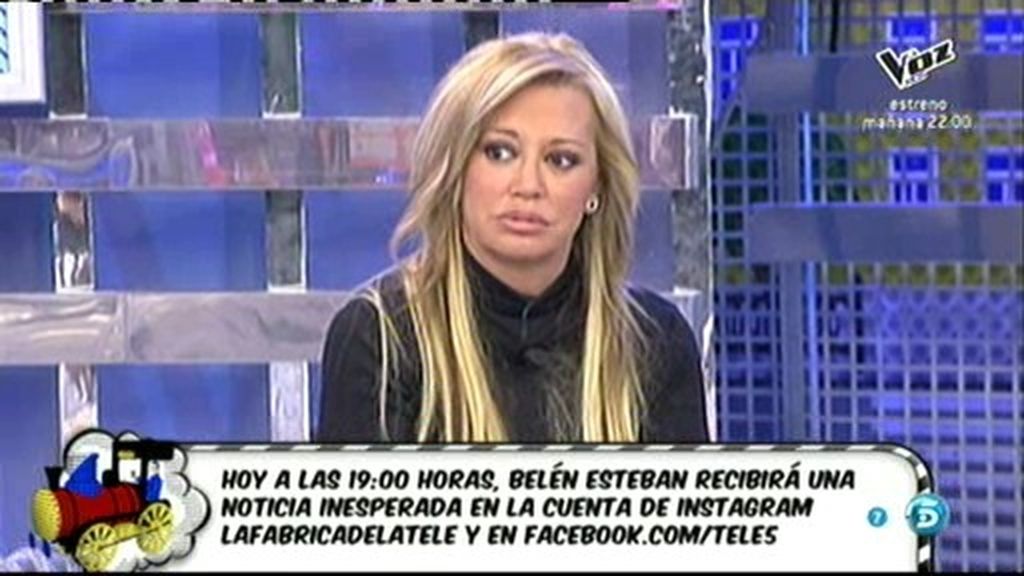 Belén Esteban ha sido informada en directo de que esta tarde recibirá una importante noticia que le incumbe en primera persona. A las 19.00 horas de la tarde, el perfil de Facebook de Telecinco y la cuenta de Instagram de La Fábrica de la Tele harán pública una información que, de momento, desconoce todo el equipo de 'Sálvame'.