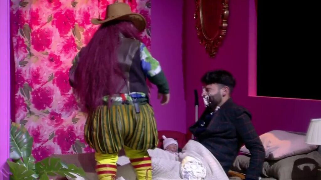 Segundos después ha llegado el primer tartazo. Colchero se preparaba para decir su frase acurrucado en la cama. Payasín le sorprendía por detrás y la tarta iba directa a su cara.