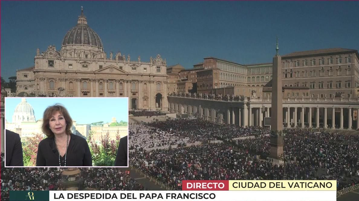 "La Tierra, en este momento, mira a Roma. Todas las edades se van a postrar a los pies de un papa que deja un legado para la historia. Hoy se celebra un funeral de un apóstol que nos ha dejado muchísimas enseñanzas, que ha querido abandonar este mundo en una sencilla caja de madera, en la única en la que pone un nombre en latín, Franciscus. El papa que, con sus errores y sus aciertos, no creía en una Iglesia cerrada como un castillo, el papa que abrió su pontificado a todas las confesiones, el papa que dijo 'la primera forma de indiferencia en la sociedad humana es la indiferencia ante el prójimo", son las sinceras y emotivas palabras de Ana Rosa Quintana para despedir al papa Francisco.