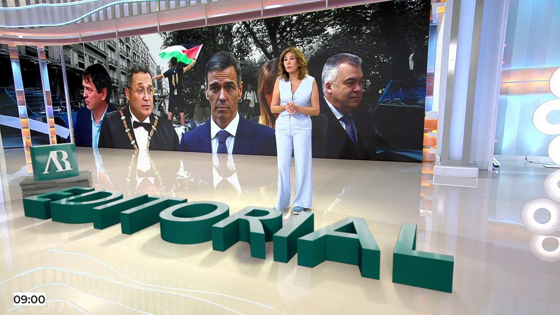 "Buenos días. O estás a favor de que se boicoteara la Vuelta a España o estás a favor del genodio de 65.000 personas en Gaza. Para el Gobierno no hay medias tintas. A la opinión sincronizada le llena de "orgullo" el sabotaje callejero a la Vuelta. Se podría inaugurar el Día Orgullo Borroka con Otegi a una carroza junto a Sánchez y sus ministros. En una alarde de paroximo, el Delegado del Gobierno se ha dado a sí mismo unas palmaditas en la espalda por el fracaso de su propio operativo. Intentaron utilizar a Franco como cortina de humo y no les salió bien", ha arrancado la presentadora de 'El Programa de Ana Rosa'.