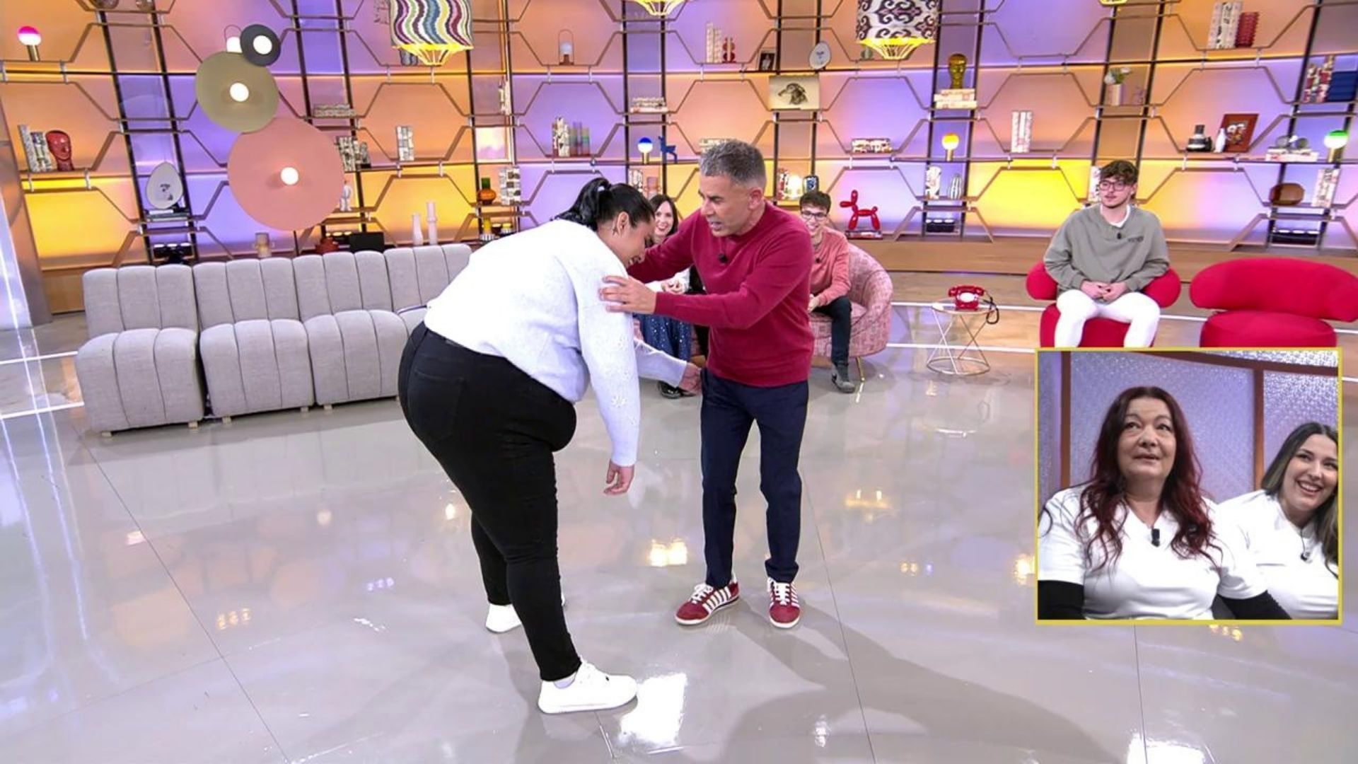 Sin embargo, hace dos años algo se rompió y se distanciaron, dejando este trío incompleto. Tras contar madre e hija la historia por la que sus caminos se separaron, el presentador conoce a Nadia a quien le lanza una primera pregunta para quitarle hierro al asunto: "¿Tú qué podrías hacer conmigo?". Algo que hace reír a la invitada: "Muchas cosas, Jorge". Y es que el presentador quiere retar a Nadia a hacer con él algún ejercicio de lucha canaria pero con una condición: "No quiero quitarme las gafas".