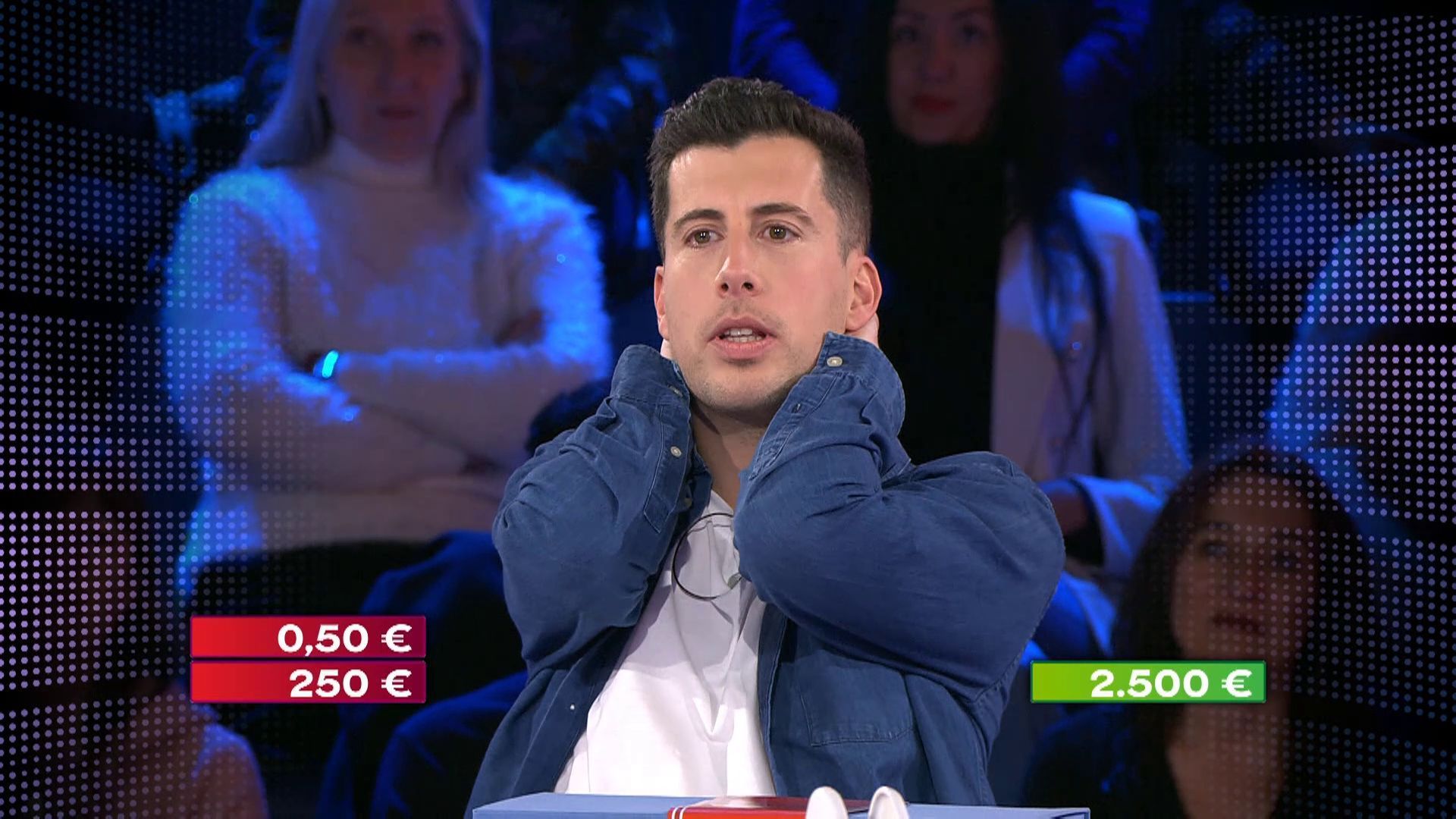 El de Huesca no ha estado solo. En la mesa de 'Allá tú' ha estado Eva, su hermana. Caja tras caja, Rubén ha seguido su instinto hasta llegar a un panel que no esperaba. Sus opciones: 0,50; 2,50; 2.500 euros. Con un panel así, la oferta de la banquera no podía ser muy alta: 1.000 euros.