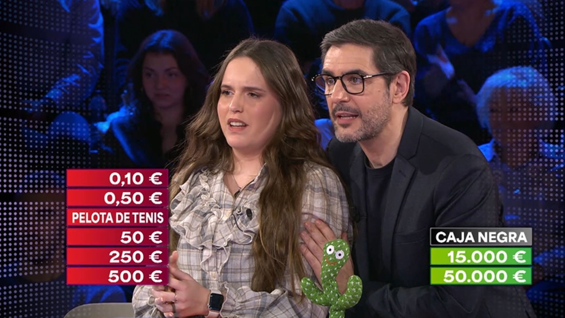 Desde 0,10 céntimos hasta 100.000 euros, una pelota de tenis, un curso de rubik y un cáctus bailarín son todas las oportunidades a las que puede aspirar Alba. La táctica de la concursante ha sido elegir los números que no le gustaban; sin embargo, pasando el ecuador del programa, por desgracia los paneles rojos eran los protagonistas.