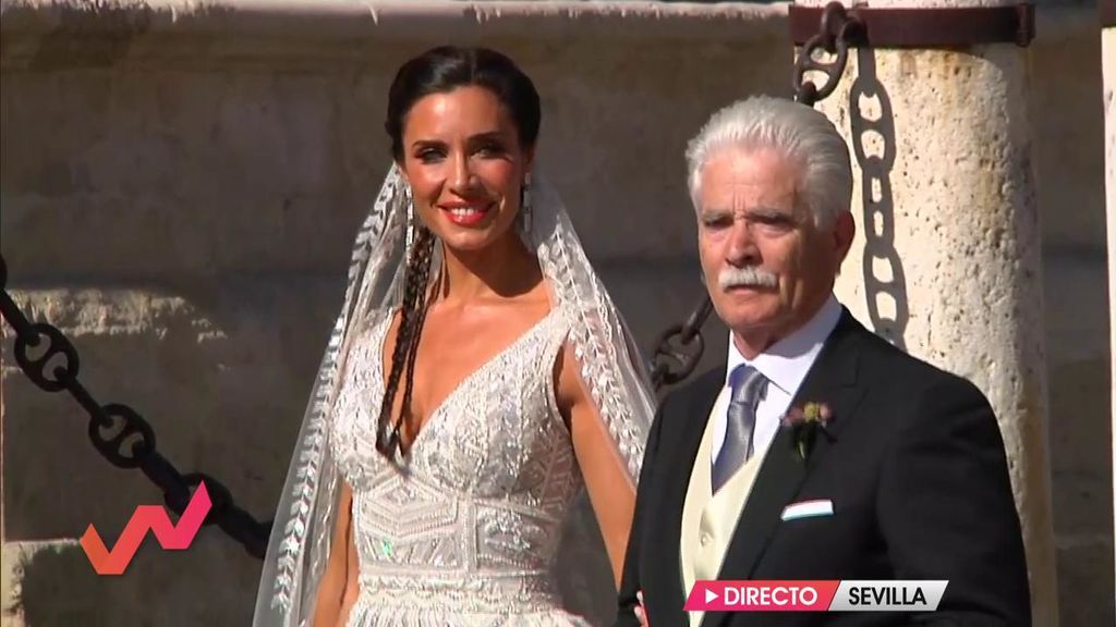 Junto al brazo de su padre, la presentadora ha caminado hasta la entrada de la Catedral y ha lucido su vestido para que todos pudieran apreciar cada detalle.