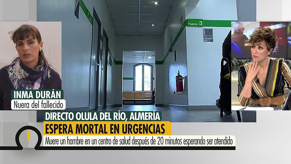 Inma Durán es la nuera del hombre fallecido en un centro médico tras 30 minutos de espera sin ser atendido. La mujer nos ha contado que su marido llegó a las 11.10 h. al centro de salud pidiendo ayuda porque su padre estaba sufriendo un infarto: “La celadora se quedó bloqueada, no podía hablar con el médico, él le cogió el teléfono y le pide que vaya porque hay un hombre que se está muriendo”.